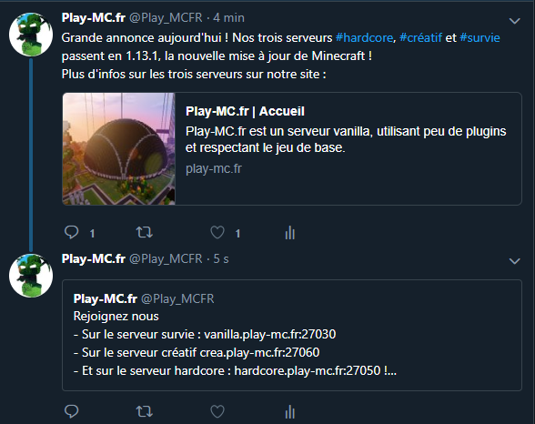 J'ai l'honneur de vous annoncer que je m'occuperai désormais du Twitter du serveur, avec l'aide de @Thomson33 (petit rappel pour ceux qui avaient oublié... https://twitter.com/Play_MCFR).